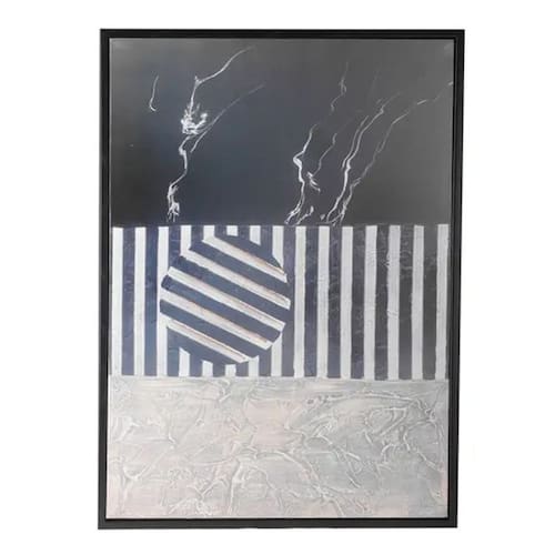 Dimensões: 53 cm de altura por 73 cm de largura, ideal para diversas áreas da casa ou do escritório.Material: Impressão de alta qualidade em canvas resistente, montado em uma estrutura de madeira leve e durável.Design Geométrico: Combinação harmoniosa de formas geométricas em preto e branco, perfeito para complementar uma variedade de estilos de decoração.Fácil Instalação: Acompanha suportes para pendurar na parede, pronto para ser exibido assim que chegar à sua porta.Adicione um toque de arte moderna e elegância ao seu ambiente com o Quadro Decorativo Geométrico. Ideal para quem busca qualidade, estilo e um ambiente mais acolhedor