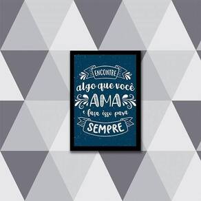 Quadro encontre o que ama, faça para sempre 24x18cm - com vidro Moldura: madeira preta Informações do produto Decoração para quarto, sala, cozinha, escritório, área gourmet e muito mais. Chega de paredes vazias Medidas - cada peça tem 24x18cm a5 . Material do papel - papel fotográfico brilhante de altíssima resolução acabamento - todos os quadros são acompanhados de vidro para proteção da imagem. - moldura em madeira maciça na cor preta e pendurador . - os quadros são embalados de forma segura com plástico bolha com camada dupla de acordo com o tamanho dos quadros. - de 3 meses. Meu quadro chegou. Como posso fixá-lo Você precisa apenas de um martelo e um prego, pois os quadros já vão acompanhados de penduradores. Esta é a forma mais indicada. Como posso limpar meu quadro A limpeza é feita como um móvel comum da sua casa. Apenas um pano seco ou espanador são suficientes para tal Marca: Não Informado Ean: 7895145445914