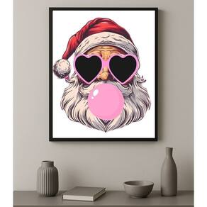 Quadro Engraçado Papai Noel Bubble Gun 24x18cm - com vidro - Cor: Moldura branca