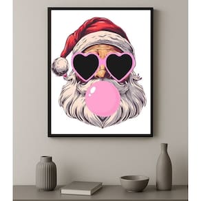 Quadro Engraçado Papai Noel Bubble Gun 24x18cm - Cor: Moldura branca