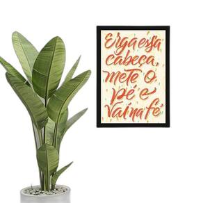 Quadro erga essa cabeça, mete o pé e vai na fé 33x24cm - com vidro Moldura: madeira preta Informações do produto tire todas as suas dúvidas no descritivo abaixo: decoração para quarto, sala, cozinha, escritório, área gourmet e muito mais. Chega de paredes vazias medidas - cada peça tem 33x24cm a4 . Material do papel - papel fotográfico brilhante de altíssima resolução acabamento - todos os quadros são acompanhados de vidro para proteção da imagem. - moldura em madeira maciça na cor preta e pendurador . - os quadros são embalados de forma segura com plástico bolha com camada dupla de acordo com o tamanho dos quadros. - de 3 meses. Meu quadro chegou. Como posso fixá-lo Você precisa apenas de um martelo e um prego, pois os quadros já vão acompanhados de penduradores. Esta é a forma mais indicada. Como posso limpar meu quadro A limpeza é feita como um móvel comum da sua casa. Apenas um pano seco ou espanador são suficientes para tal Marca: Não Informado