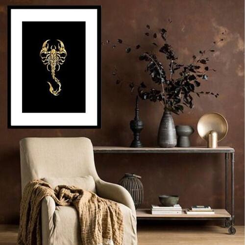 Quadro escorpião dourado - 60x48cm Moldura: madeira branca Informações do produto tire todas as suas dúvidas no descritivo abaixo: decoração para quarto, sala, cozinha, escritório, área gourmet e muito mais. Chega de paredes vazias medidas - cada peça tem 60x48cm . Material do papel - papel fotográfico brilhante de altíssima resolução acabamento - todos os quadros são acompanhados de vidro para proteção da imagem. - moldura em madeira maciça na cor preta ou branca conforme produto escolhido e pendurador. - paspatur branco com 7cm de largura - os quadros são embalados de forma segura com plástico bolha com camada dupla de acordo com o tamanho dos quadros. Garantia - garantia de 3 meses. Meu quadro chegou. Como posso fixá-lo Você precisa apenas de um martelo e um prego, pois os quadros já vão acompanhados de penduradores. Esta é a forma mais indicada. Como posso limpar meu quadro A limpeza é feita como um móvel comum da sua casa. Apenas um pano seco ou espanador são suficientes para tal
