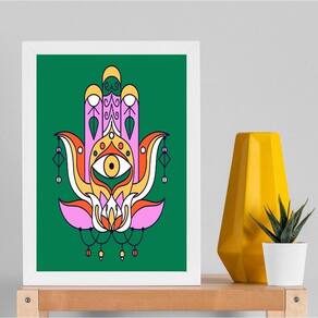 Quadro esotérico olho grego hamsa - verde 45x34cm