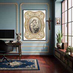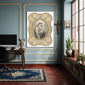 Quadro Estampa da Virgem Maria e o Menino Jesus - 70x50cm - Cor: Moldura Branca