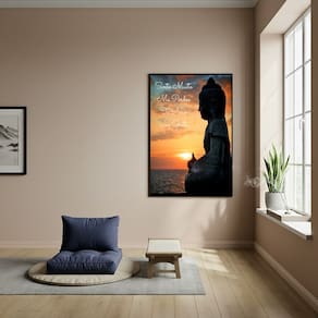 Quadro Estátua de Buda - Símbolo de Renascimento - 70x50cm - Cor: Moldura Preta