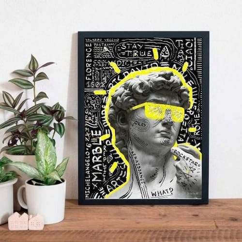 Quadro estátua grega pop art 24x18cm Moldura: madeira preta Informações do produto Decoração para quarto, sala, cozinha, escritório, área gourmet e muito mais. Chega de paredes vazias Medidas - cada peça tem 24x18cm a5 . Material do papel - papel fotográfico brilhante de altíssima resolução Acabamento - todos os quadros são acompanhados de uma película de acetato para proteção da imagem. - Os quadros são embalados de forma segura com plástico bolha com camada dupla de acordo com o tamanho dos quadros. - de 3 meses. Meu quadro chegou. Como posso fixá-lo Você precisa apenas de um martelo e um prego, pois os quadros já vão acompanhados de penduradores. Esta é a forma mais indicada. Caso prefira, você pode utilizar uma fita dupla face neste caso, sugerimos de alta qualidade para evitar que descole e seu quadro caia . Como posso limpar meu quadro A limpeza é feita como um móvel comum da sua casa. Apenas um pano seco ou espanador são suficientes para tal Marca: Não Informado Ean: 7895145474297