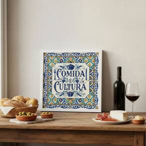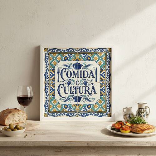 Quadro Estilo Azulejo Comida é Cultura 33x33cm Mold Branca Vidro