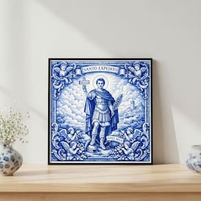 Quadro Estilo Azulejo Santo Expedito 33x33 Mold Preta Vidro