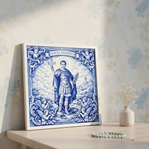 Quadro Estilo Azulejo Santo Expedito 33x33 Mold Preta