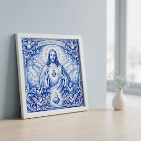 Quadro Estilo Azulejo Sgdo. Coração Jesus 33x33 Mold Branca
