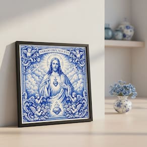 Quadro Estilo Azulejo Sgdo. Coração Jesus 33x33 Mold Preta Vidro