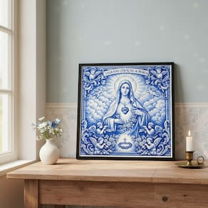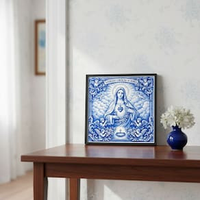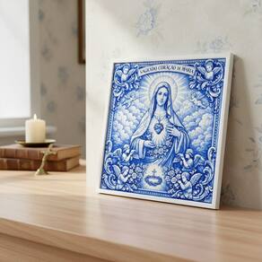 Quadro Estilo Azulejo Sgdo. Coração Maria 33x33 Mold Preta
