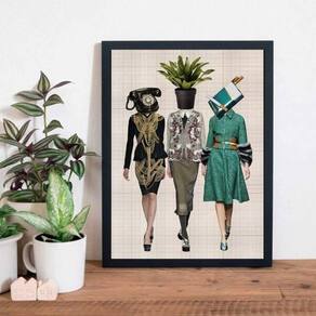 Quadro Estilo Colagem Mulheres Retrô 24X18Cm - Com Vidro