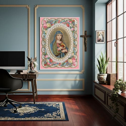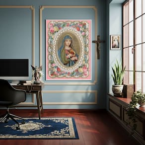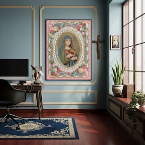 Quadro Estilo Pintura do Imaculado Coração de Maria -70x50cm - Cor: Moldura Branca