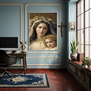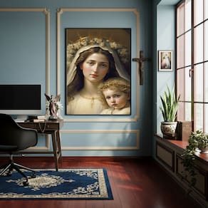 Quadro Estilo Pintura Nossa Senhora e o Menino Jesus-70x50cm - Cor: Moldura Branca