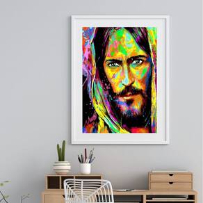 Quadro Estilo Pintura Rosto Jesus - 60x48cm - Moldura: Madeira branca