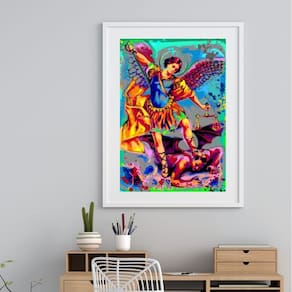 Quadro Estilo Pintura São Miguel Arcanjo - 60x48cm - Moldura: Madeira preta