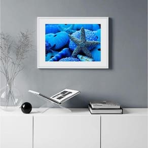 Quadro estrela do mar azul intenso - 60x48cm Moldura: madeira branca Informações do produto tire todas as suas dúvidas no descritivo abaixo: decoração para quarto, sala, cozinha, escritório, área gourmet e muito mais. Chega de paredes vazias medidas - cada peça tem 60x48cm . Material do papel - papel fotográfico brilhante de altíssima resolução acabamento - todos os quadros são acompanhados de vidro para proteção da imagem. - moldura em madeira maciça na cor preta ou branca conforme produto escolhido e pendurador. - paspatur branco com 7cm de largura - os quadros são embalados de forma segura com plástico bolha com camada dupla de acordo com o tamanho dos quadros. Garantia - garantia de 3 meses. Meu quadro chegou. Como posso fixá-lo Você precisa apenas de um martelo e um prego, pois os quadros já vão acompanhados de penduradores. Esta é a forma mais indicada. Como posso limpar meu quadro A limpeza é feita como um móvel comum da sua casa. Apenas um pano seco ou espanador são suficientes para tal