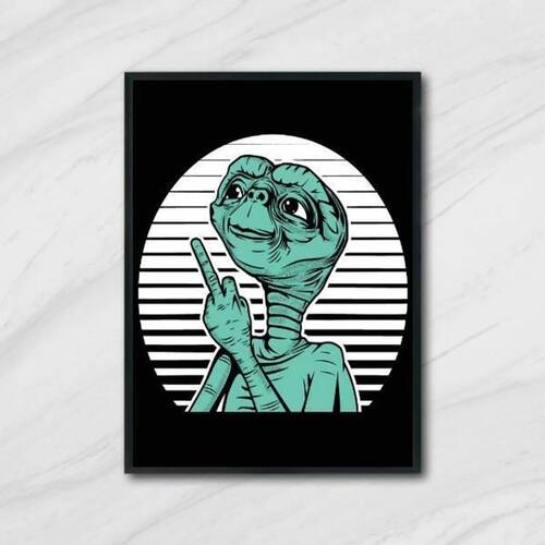 Quadro et mostrando o dedo 33x24cm - com vidro Moldura: madeira branca Informações do produto tire todas as suas dúvidas no descritivo abaixo: decoração para quarto, sala, cozinha, escritório, área gourmet e muito mais. Chega de paredes vazias medidas - cada peça tem 33x24cm a4 . Material do papel - papel fotográfico brilhante de altíssima resolução acabamento - todos os quadros são acompanhados de vidro para proteção da imagem. - moldura em madeira maciça na cor preta e pendurador . - os quadros são embalados de forma segura com plástico bolha com camada dupla de acordo com o tamanho dos quadros. - de 3 meses. Meu quadro chegou. Como posso fixá-lo Você precisa apenas de um martelo e um prego, pois os quadros já vão acompanhados de penduradores. Esta é a forma mais indicada. Como posso limpar meu quadro A limpeza é feita como um móvel comum da sua casa. Apenas um pano seco ou espanador são suficientes para tal Marca: Não Informado