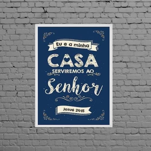 Quadro eu e minha casa serviremos ao senhor 33x24cm - com vidro Moldura: madeira branca Informações do produto tire todas as suas dúvidas no descritivo abaixo: decoração para quarto, sala, cozinha, escritório, área gourmet e muito mais. Chega de paredes vazias medidas - cada peça tem 33x24cm a4 . Material do papel - papel fotográfico brilhante de altíssima resolução acabamento - todos os quadros são acompanhados de vidro para proteção da imagem. - moldura em madeira maciça na cor preta e pendurador . - os quadros são embalados de forma segura com plástico bolha com camada dupla de acordo com o tamanho dos quadros. - de 3 meses. Meu quadro chegou. Como posso fixá-lo Você precisa apenas de um martelo e um prego, pois os quadros já vão acompanhados de penduradores. Esta é a forma mais indicada. Como posso limpar meu quadro A limpeza é feita como um móvel comum da sua casa. Apenas um pano seco ou espanador são suficientes para tal Ean: 7895142248891