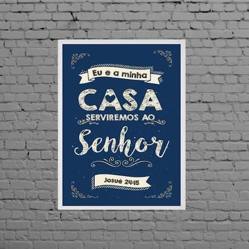 Quadro eu e minha casa serviremos ao senhor 33x24cm Moldura: madeira branca Informações do produto tire todas as suas dúvidas no descritivo abaixo: decoração para quarto, sala, cozinha, escritório, área gourmet e muito mais. Chega de paredes vazias medidas - cada peça tem 33x24cm a4 . Material do papel - papel fotográfico brilhante de altíssima resolução acabamento - todos os quadros são acompanhados de uma película de acetato para proteção da imagem. - moldura em madeira maciça na cor preta e pendurador móvel que pode ser retirado facilmente caso deseje fixar com fita dupla face. - os quadros são embalados de forma segura com plástico bolha com camada dupla de acordo com o tamanho dos quadros.