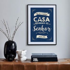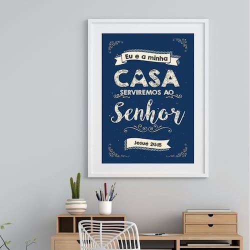 Quadro eu e minha casa serviremos ao senhor - 60x48cm Moldura: madeira branca Informações do produto tire todas as suas dúvidas no descritivo abaixo: decoração para quarto, sala, cozinha, escritório, área gourmet e muito mais. Chega de paredes vazias medidas - cada peça tem 60x48cm . Material do papel - papel fotográfico brilhante de altíssima resolução acabamento - todos os quadros são acompanhados de vidro para proteção da imagem. - moldura em madeira maciça na cor preta ou branca conforme produto escolhido e pendurador. - paspatur branco com 7cm de largura - os quadros são embalados de forma segura com plástico bolha com camada dupla de acordo com o tamanho dos quadros. - de 3 meses. Meu quadro chegou. Como posso fixá-lo Você precisa apenas de um martelo e um prego, pois os quadros já vão acompanhados de penduradores. Esta é a forma mais indicada. Como posso limpar meu quadro A limpeza é feita como um móvel comum da sua casa. Apenas um pano seco ou espanador são suficientes para tal