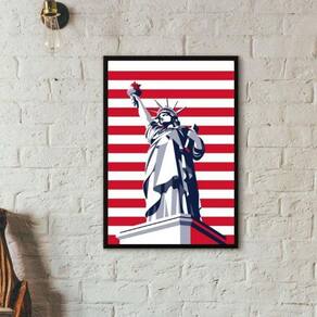 Quadro eua - estátua da liberdade listras 24x18cm