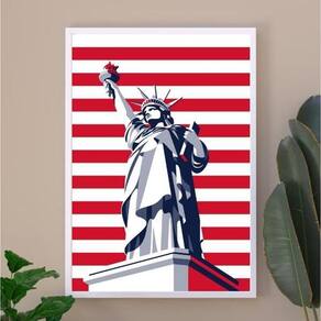 Quadro Eua - Estátua Da Liberdade Listras 45X34Cm