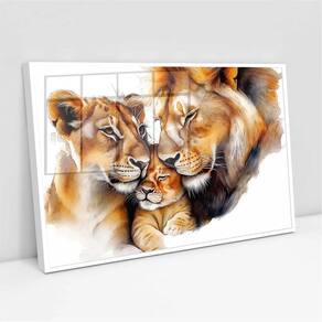 Quadro Família Leões Aquarela Fundo Branco - 50X70Cm