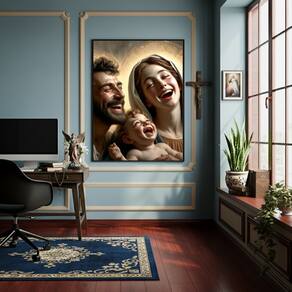 Quadro Família Santa - Jesus, Maria e José - 70x50cm - Cor: Moldura Preta