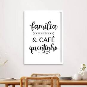 Quadro família unida e café quentinho 45x34cm Cor: moldura preta Informações do produto tire todas as suas dúvidas no descritivo abaixo: decoração para quarto, sala, cozinha, escritório, área gourmet e muito mais. Chega de paredes vazias. Medidas - cada peça tem 45x34cm a3 . Material do papel - papel fotográfico brilhante de altíssima resolução acabamento - todos os quadros são acompanhados de uma película de acetato para proteção da imagem. - os quadros são embalados de forma segura com plástico bolha com camada dupla de acordo com o tamanho dos quadros. Garantia - garantia de 3 meses. Meu quadro chegou. Como posso fixá-lo Você precisa apenas de um martelo e um prego, pois os quadros já vão acompanhados de penduradores. Esta é a forma mais indicada. Caso prefira, você pode utilizar uma fita dupla face neste caso, sugerimos de alta qualidade para evitar que descole e seu quadro caia . Como posso limpar meu quadro A limpeza é feita como um móvel comum da sua casa. Apenas um pano seco ou espanador são suficientes para tal