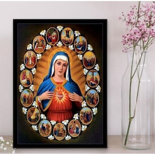 Quadro fases da vida de maria 45x34cm - com vidro Moldura: madeira preta