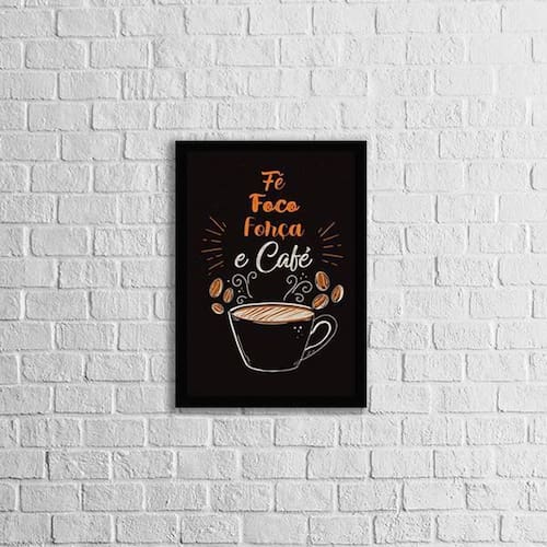 Quadro fé, foco, força e café 33x24cm - com vidro Moldura: madeira preta Informações do produto tire todas as suas dúvidas no descritivo abaixo: decoração para quarto, sala, cozinha, escritório, área gourmet e muito mais. Chega de paredes vazias medidas - cada peça tem 33x24cm a4 . Material do papel - papel fotográfico brilhante de altíssima resolução acabamento - todos os quadros são acompanhados de vidro para proteção da imagem. - moldura em madeira maciça na cor preta e pendurador . - os quadros são embalados de forma segura com plástico bolha com camada dupla de acordo com o tamanho dos quadros. - de 3 meses. Meu quadro chegou. Como posso fixá-lo Você precisa apenas de um martelo e um prego, pois os quadros já vão acompanhados de penduradores. Esta é a forma mais indicada. Como posso limpar meu quadro A limpeza é feita como um móvel comum da sua casa. Apenas um pano seco ou espanador são suficientes para tal Ean: 7895142224680