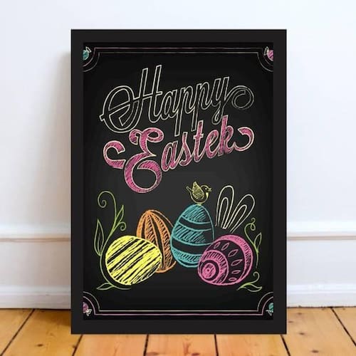 Quadro feliz páscoa happy easter 24x18cm Moldura: madeira preta Informações do produto tire todas as suas dúvidas no descritivo abaixo: decoração para quarto, sala, cozinha, escritório, área gourmet e muito mais. Chega de paredes vazias medidas - cada peça tem 24x18cm a5 . Material do papel - papel fotográfico brilhante de altíssima resolução acabamento - todos os quadros são acompanhados de uma película de acetato para proteção da imagem. - os quadros são embalados de forma segura com plástico bolha com camada dupla de acordo com o tamanho dos quadros. - de 3 meses. Meu quadro chegou. Como posso fixá-lo Você precisa apenas de um martelo e um prego, pois os quadros já vão acompanhados de penduradores. Esta é a forma mais indicada. Caso prefira, você pode utilizar uma fita dupla face neste caso, sugerimos de alta qualidade para evitar que descole e seu quadro caia . Como posso limpar meu quadro A limpeza é feita como um móvel comum da sua casa. Apenas um pano seco ou espanador são suficientes para tal Marca: Não Informado Ean: 7892090580394