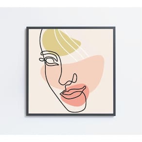 Quadro Feminino Silhueta Face Artística Contínua Medidas 60x60 Cm Impressão Vidro Acrílico