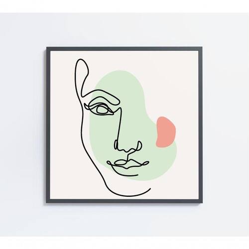 Quadro Decorativo Feminino Silhueta Meia Face Artística Contínua Medidas 80x80 Cm Tipo De Impressão Vidro Acrílico