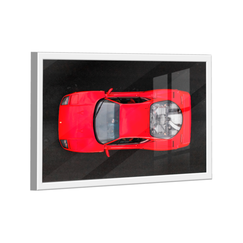 Quadro Ferrari F40 Vermelha Cima -- BR ARTES Moldura Branca e Vidro - Ultra Grande 150x100 -
