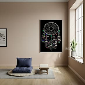 Quadro Filtro dos Sonhos - Apanhador de Sonhos - 70x50cm - Cor: Moldura Preta
