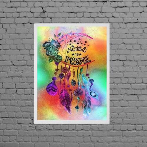 Quadro filtro sonhos nothing is impossible 45x34cm Moldura: madeira branca Informações do produto tire todas as suas dúvidas no descritivo abaixo: decoração para quarto, sala, cozinha, escritório, área gourmet e muito mais. Chega de paredes vazias medidas - cada peça tem 45x34cm a3 . Material do papel - papel fotográfico brilhante de altíssima resolução acabamento - todos os quadros são acompanhados de uma película de acetato para proteção da imagem. - moldura em madeira maciça na cor branca e pendurador móvel que pode ser retirado facilmente caso deseje fixar com fita dupla face. - os quadros são embalados de forma segura com plástico bolha com camada dupla de acordo com o tamanho dos quadros. G Marca: Não Informado Ean: 7892091099895