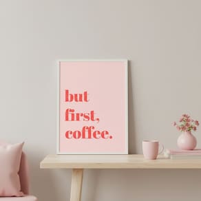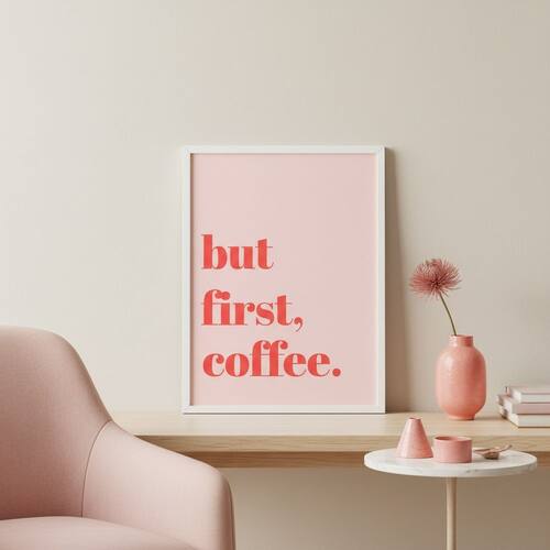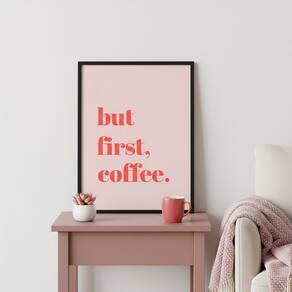 Quadro First Coffee Minimal Rosa 45x34cm Mold Preta Vidro
