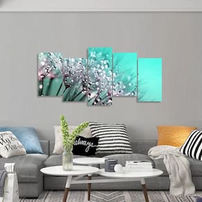 Dimensões do Produto: Quadro decorativo Mosaico de 5 Peças: Tamanho total de 125x60 cm Comprimento x Altura 04 Peças laterais de 25x45 cm cada 01 Peça Central de 25x60 cm. Espaçamento sugerido entre as peças 1 cm Espessura do produto 9 mm