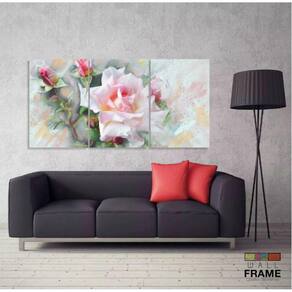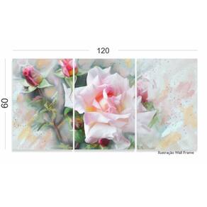 Quadro Flor Rosa Branca Sala Quarto Em Tecido 120x60 3 peças