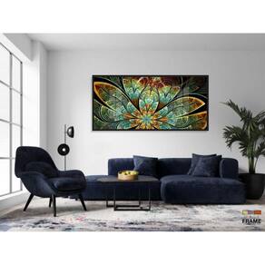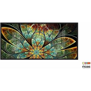 Quadro Flor Vitral Decorativo 130x60 Moldura Preta 2x2