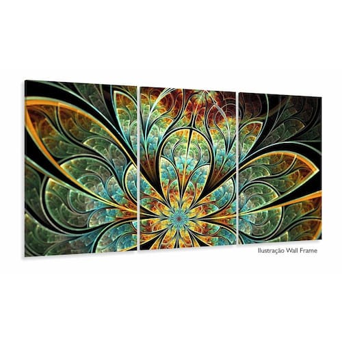 Quadro Flor Vitral Decorativo Tela Em Tecido 3 Peças