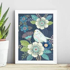 Quadro floral azul com passarinho 24x18cm - com vidro Moldura: madeira preta Informações do produto tire todas as suas dúvidas no descritivo abaixo: decoração para quarto, sala, cozinha, escritório, área gourmet e muito mais. Chega de paredes vazias medidas - cada peça tem 24x18cm a5 . Material do papel - papel fotográfico brilhante de altíssima resolução acabamento - todos os quadros são acompanhados de vidro para proteção da imagem. - moldura em madeira maciça na cor preta ou branca conforme produto escolhido e pendurador . - os quadros são embalados de forma segura com plástico bolha com camada dupla de acordo com o tamanho dos quadros. Garantia - garantia de 3 meses. Meu quadro chegou. Como posso fixá-lo Você precisa apenas de um martelo e um prego, pois os quadros já vão acompanhados de penduradores. Esta é a forma mais indicada. Como posso limpar meu quadro A limpeza é feita como um móvel comum da sua casa. Apenas um pano seco ou espanador são suficientes para tal