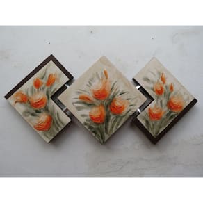 REF:1Quadro formado por 3 painéis em forma de losângulos, interligados por estrutura de alumínio. Painel moderno decorativo,pintura acrílica, com textura e apliques em alumínio e mdf.Material de excelente qualidade. Ideal para vários ambientes.Cores: Foto 01 - rosaFoto 02 - laranjatamanho: 57x120cm Marca: Josue Quadros