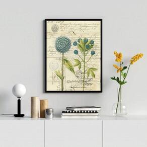 Quadro Flores Azuis - Botânica Retrô 33x24cm - Com Vidro
