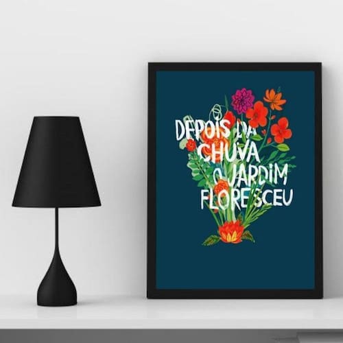 O Quadro Depois Da Chuva O Jardim Floresceu é perfeito para decorar seu quarto, sala, cozinha, escritório, área gourmet e muito mais. Com medidas de 33x24cm A4 , sua moldura de madeira branca proporciona um visual elegante e moderno.