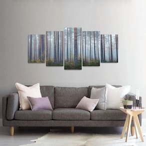 Especificações: Quadro decorativo Mosaico de 5 Peças: Tamanho total de 125x60 cm Comprimento x Altura 02 Peças menores de 25x40 cm cada 02 Peças Médias de 25x50 cm cada 01 Peça Central de 25x60 cm Espaçamento sugerido entre as peças - 1 á 2 cm Espessura do produto - 9 mm