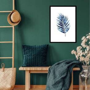 Quadro folha palmeira azul - 60x48cm Moldura: madeira preta Informações do produto tire todas as suas dúvidas no descritivo abaixo: decoração para quarto, sala, cozinha, escritório, área gourmet e muito mais. Chega de paredes vazias medidas - cada peça tem 60x48cm . Material do papel - papel fotográfico brilhante de altíssima resolução acabamento - todos os quadros são acompanhados de vidro para proteção da imagem. - moldura em madeira maciça na cor preta ou branca conforme produto escolhido e pendurador. - paspatur branco com 7cm de largura - os quadros são embalados de forma segura com plástico bolha com camada dupla de acordo com o tamanho dos quadros. - de 3 meses. Meu quadro chegou. Como posso fixá-lo Você precisa apenas de um martelo e um prego, pois os quadros já vão acompanhados de penduradores. Esta é a forma mais indicada. Como posso limpar meu quadro A limpeza é feita como um móvel comum da sua casa. Apenas um pano seco ou espanador são suficientes para tal Marca: Não Informado